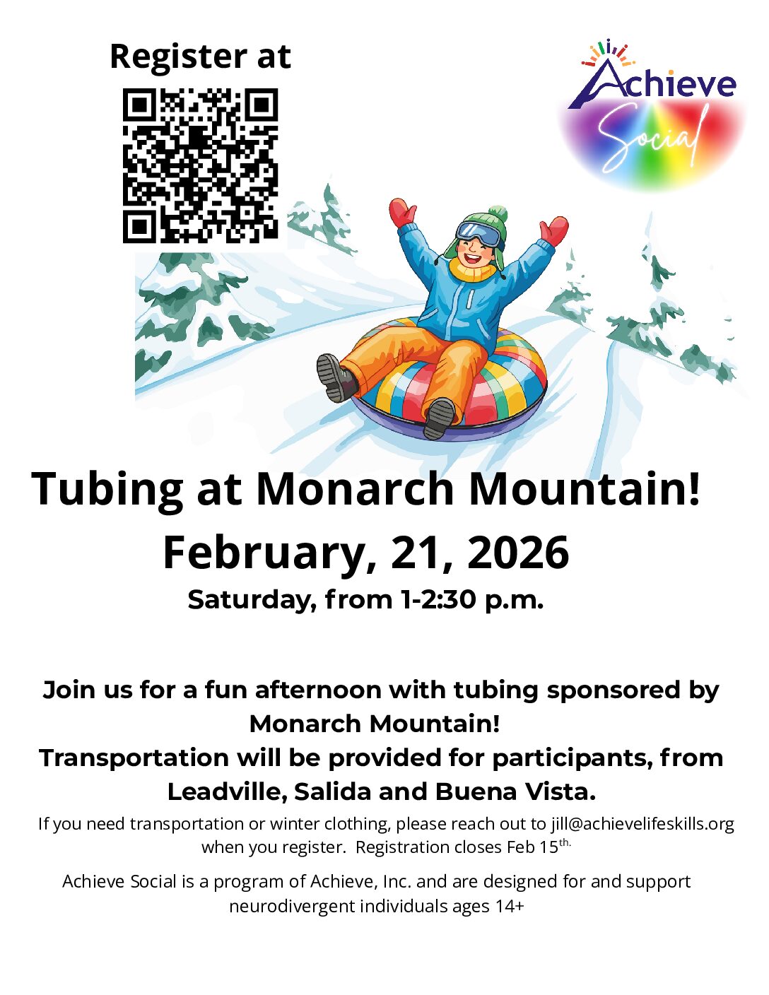 Achieve Social: Tubing at Monarch Mountain – Feb. 21, 2026