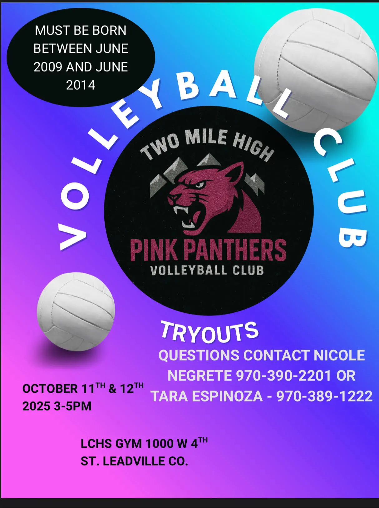 All our welcome to attend for Two Mile High Volleyball Club Tryouts will be Saturday October 11th and Sunday October 12th (please attend both nights) from 3PM to 5PM at Lake County High School Gym 1000 W 4th Street Leadville, CO 80461 Any Questions please contact Nicole Negrete (970) 390-2201 or Tara Espinoza (970) 389-1222 […] |