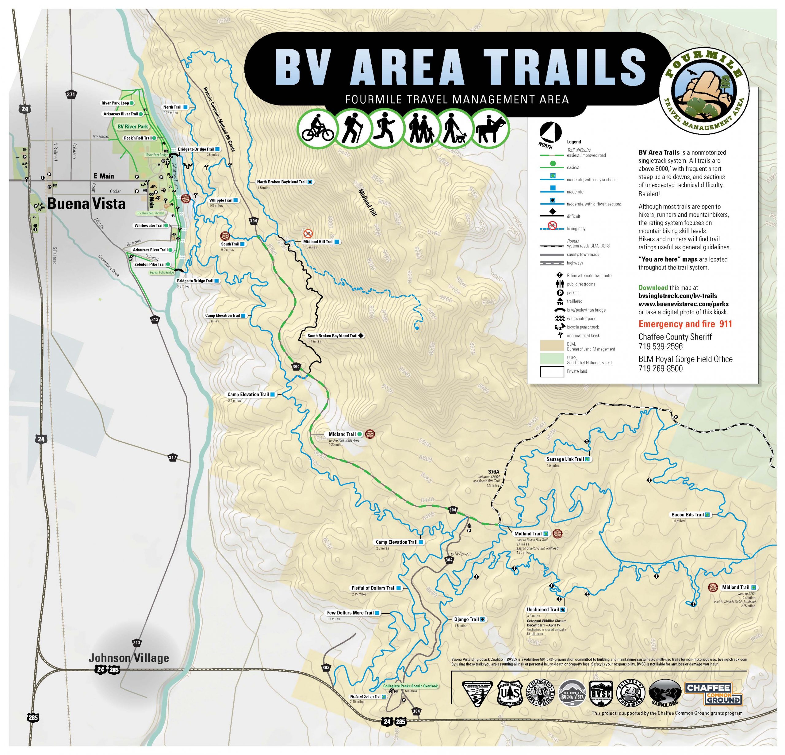 View and download a PDF map of the Buena Vista area’s public lands trails for offline access wherever you are. This includes trails in the local BLM and USFS districts.